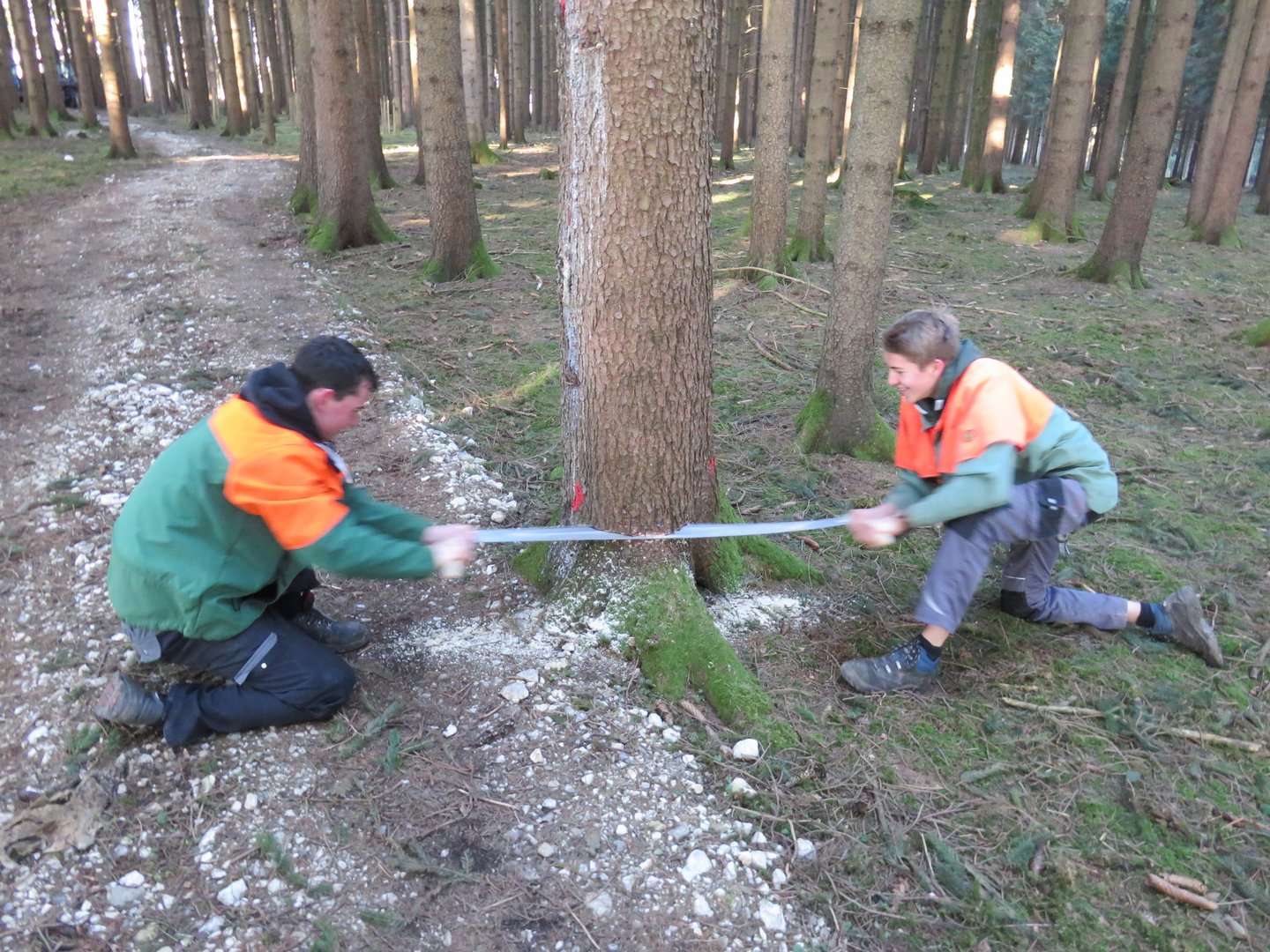 Der Maibaum in Vorchdorf ist etwas Besonderes: er wird von Hand per Zugsäge und Axt gefällt, um am 30.04. für das ebenso händische Aufstellen bereitzustehen.